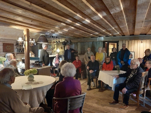 Saimme nauttia kahvista innokkaassa seurassa ja kuulla tarinoita paikan historiasta ja vanhoista myllymatkoista.
